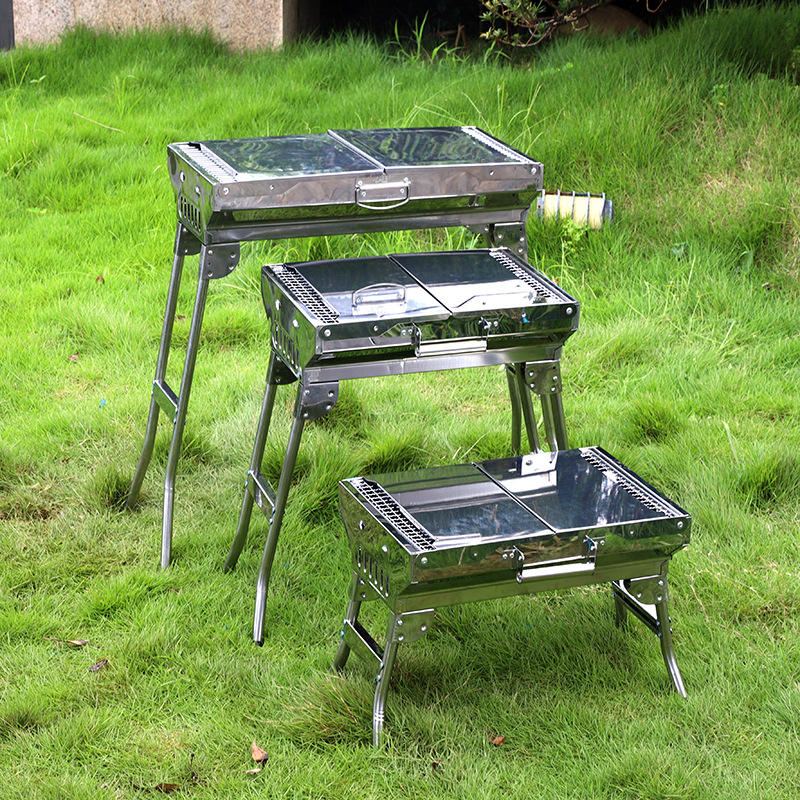 Barbecue a Carbone Pieghevole a Doppia Ala in Acciaio Inossidabile, Portatile e Resistente, Stile Valigia, per Campeggio e Picnic all'Aperto, Versatile e ad Alte Prestazioni
