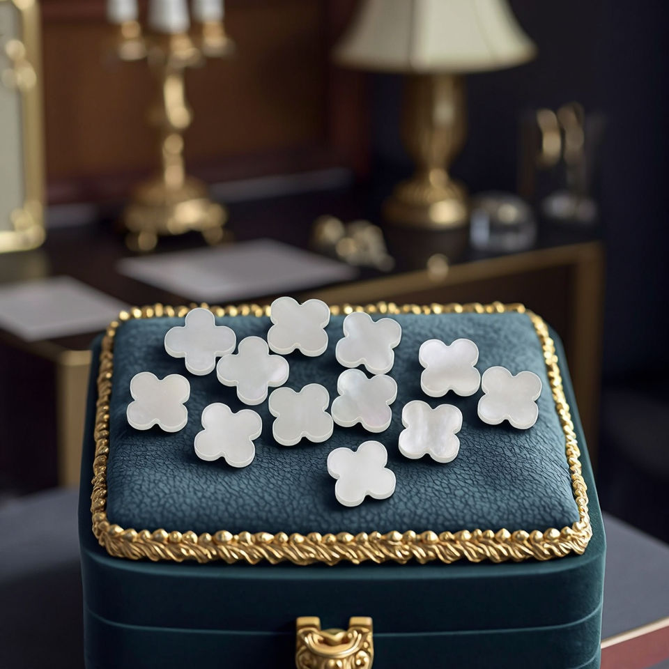 Dubai Wholesale High-quality Heavy Zircon Clover 13x13x2.1mm 1.2g Natural White Mother of Pearl Clover Four Leaf Clover Stone