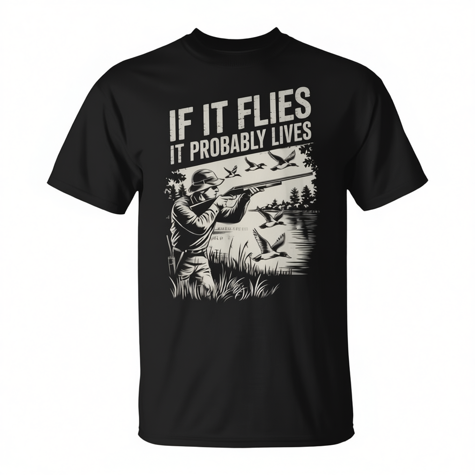 T-shirt da caccia alle anatre retrò vintage If IT Flies IT Probably Lives Design Abbigliamento da uomo