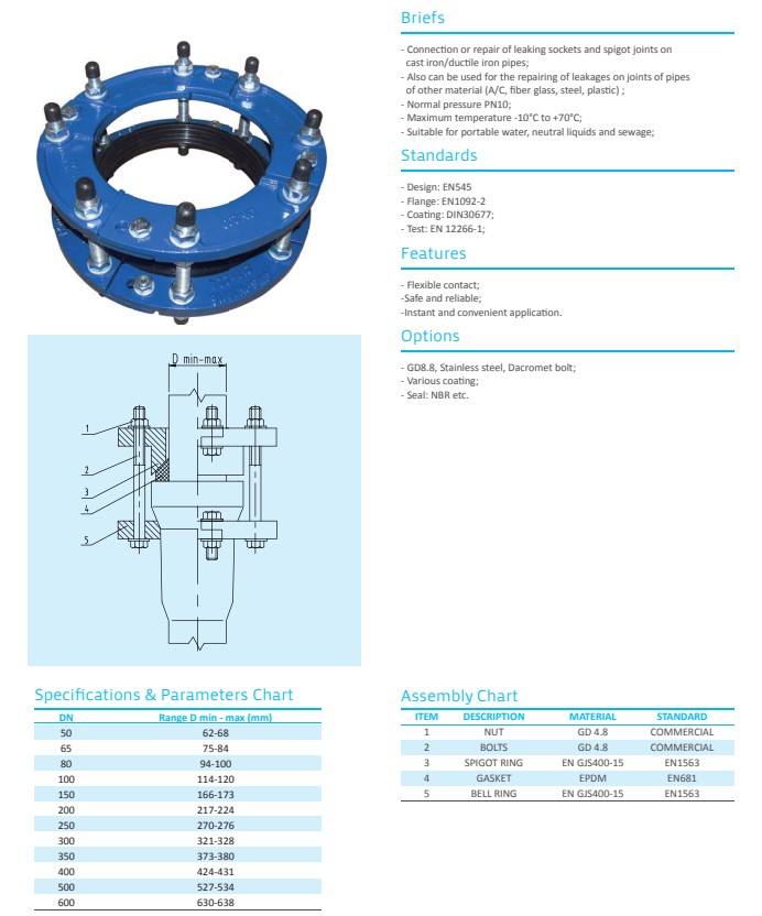Nome del prodotto:Morsetto di riparazione a campana per tubo