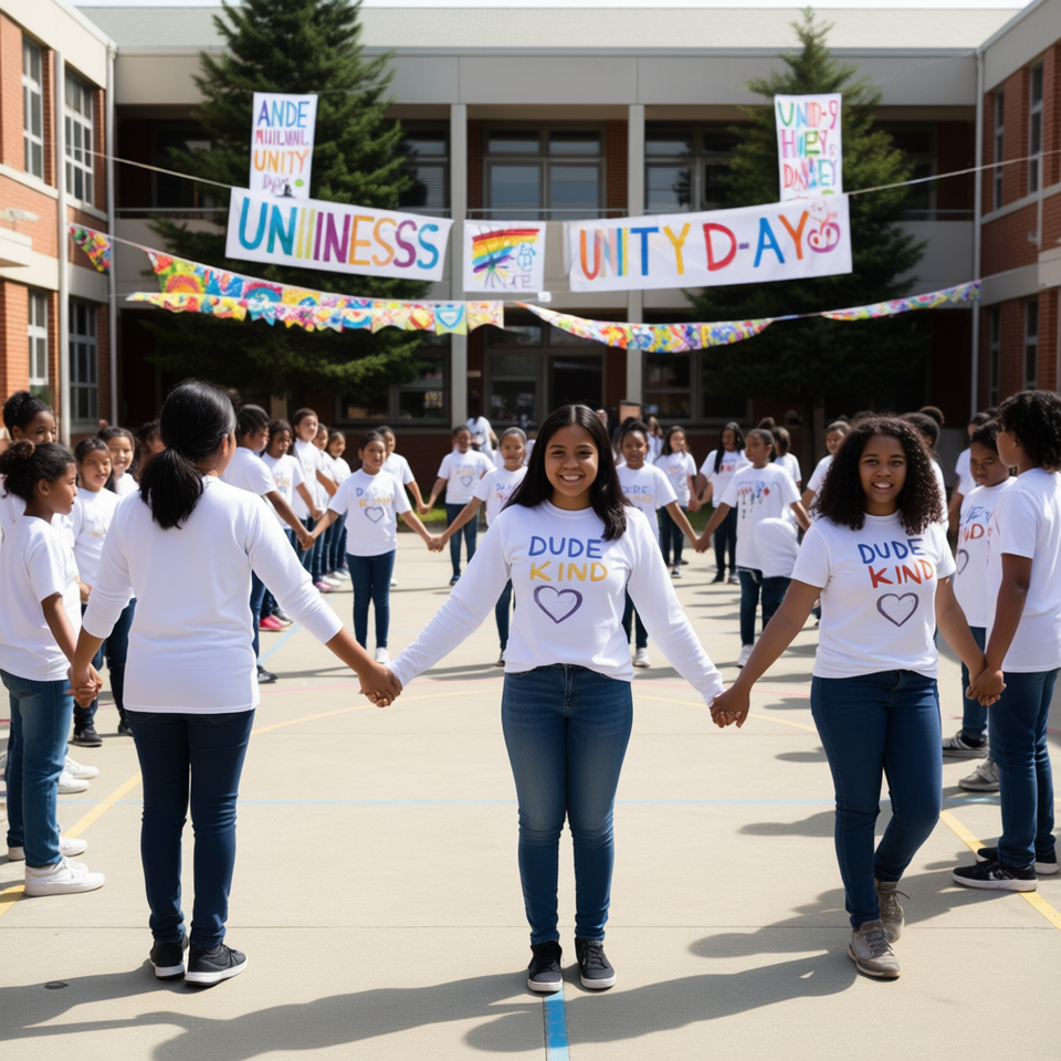 T-shirt a maniche lunghe arancione Dude Be Kind, t-shirt promozionale anti-bullying per il Giorno dell'Unità e della Gentilezza