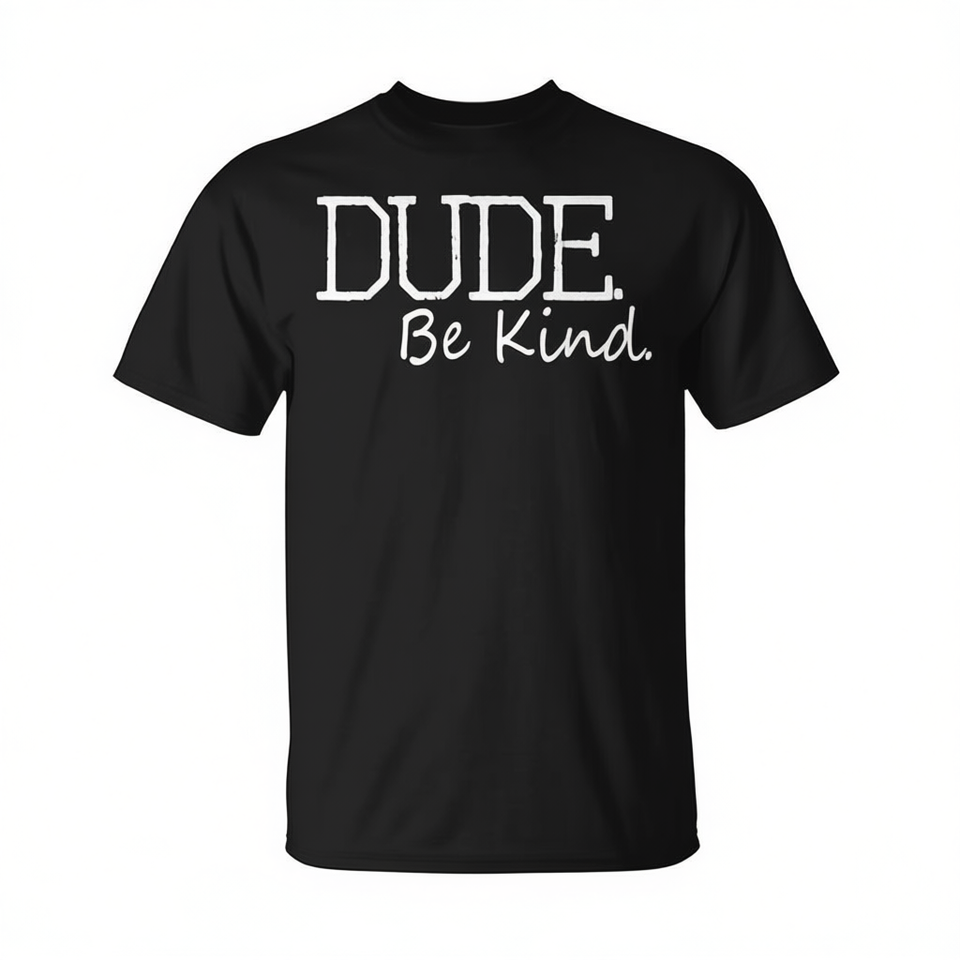 T-shirt Dude Be Kind in cotone a maniche corte con scollo rotondo, abbigliamento promozionale unisex per adulti