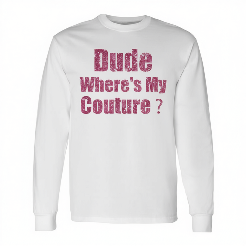 Maglietta a maniche lunghe Dude Wheres My Couture, bianca, taglia unisex per adulti