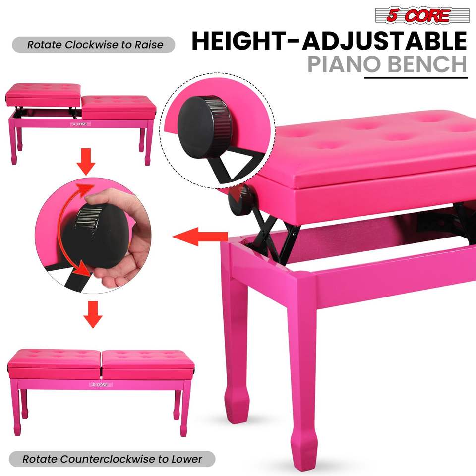 Panca per pianoforte imbottita in legno da 3,5 pollici Duet, seduta doppia per tastiera resistente, sedia per musicista regolabile in altezza con vano portaoggetti