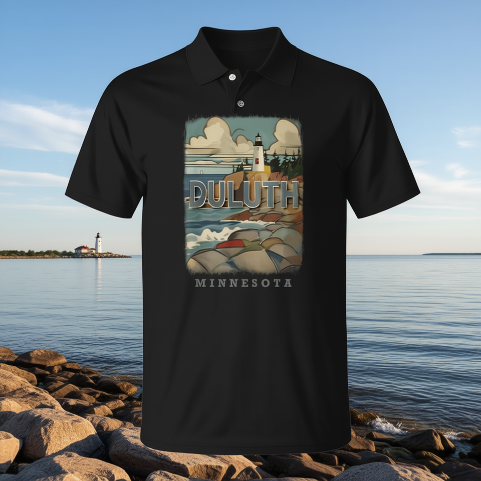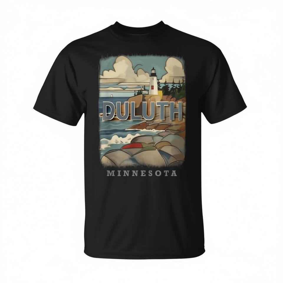Duluth Minnesota Lakeside Tranquility T-Shirt Adult Unisex Black