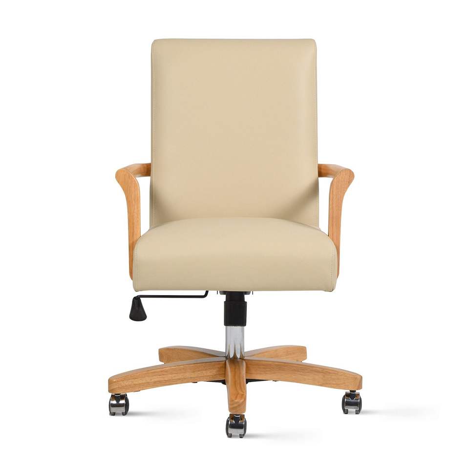Sedia da Ufficio Direzionale Dumont Modern Farmhouse con Schienale Alto in Pelle Beige Crema e Legno Naturale per Uso Domestico e Ufficio