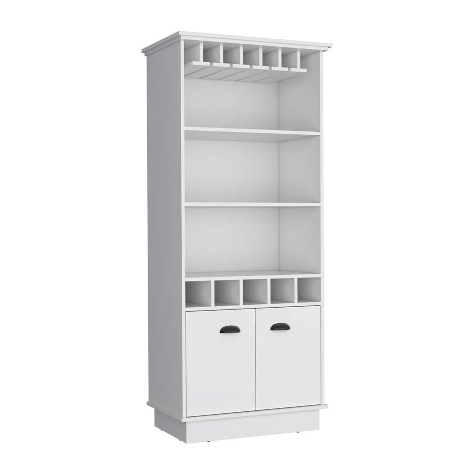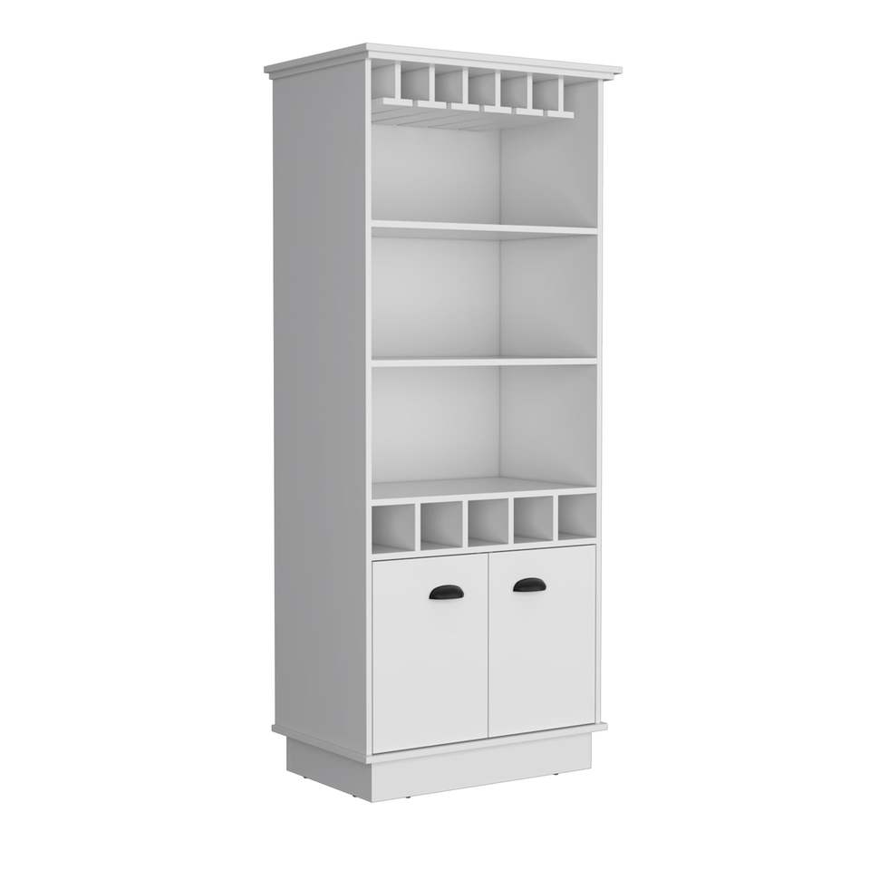 Mobile bar alto Dundee da 70 pollici, bianco, con 10 ante in vetro, 5 scomparti e 3 ripiani aperti