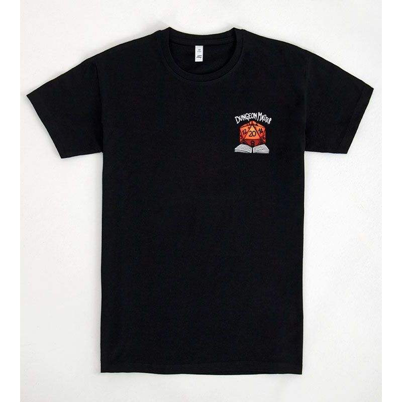 T-shirt Dungeon Master Dice nera con stampa D20 a 20 facce, abbigliamento da gioco per giocatori di giochi di ruolo