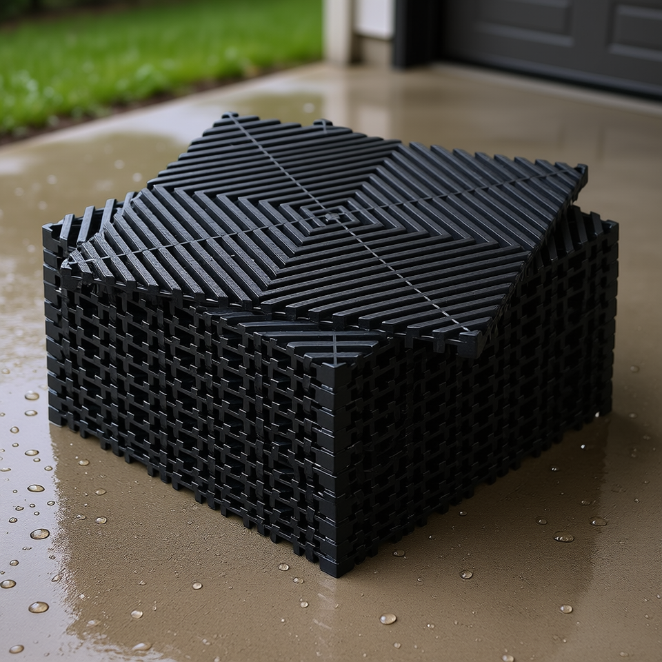 Tappetino Drenante a Incastro 12x12 Piedi, 12 Pezzi, Nero, Piastrelle Modulari Antiscivolo per Garage, Doccia Esterna, Materiale EVA