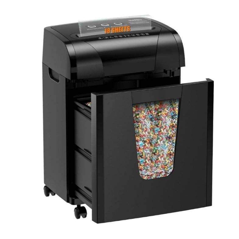 Distruggidocumenti a Taglio Incrociato Durevole da 18 Fogli con Contenitore Estraibile da 18 Litri, Livello di Sicurezza P-4 per Carte di Credito, Distrugge Carta in Modo Sicuro