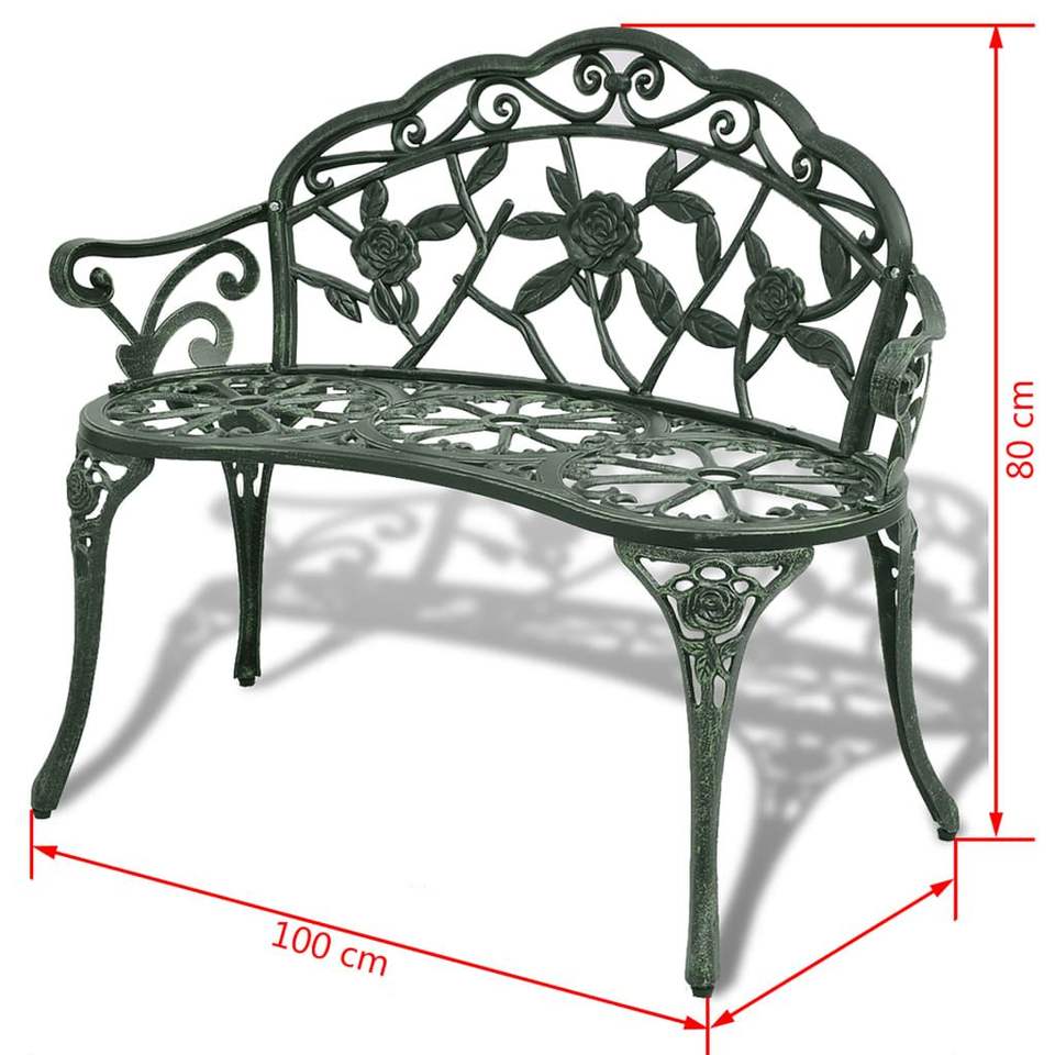 Durable 39.4 in Green Cast Aluminum/Golden Cast Iron Patio Bench for Garden Use