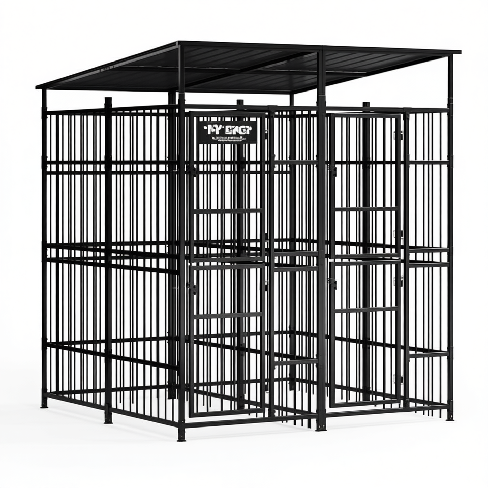 Recinto per Cani in Acciaio Verniciato a Polvere Nera, Resistente, 39.7 Piedi Quadrati, Alloggio Esterno per Animali di Taglia Grande, Forma Rettangolare