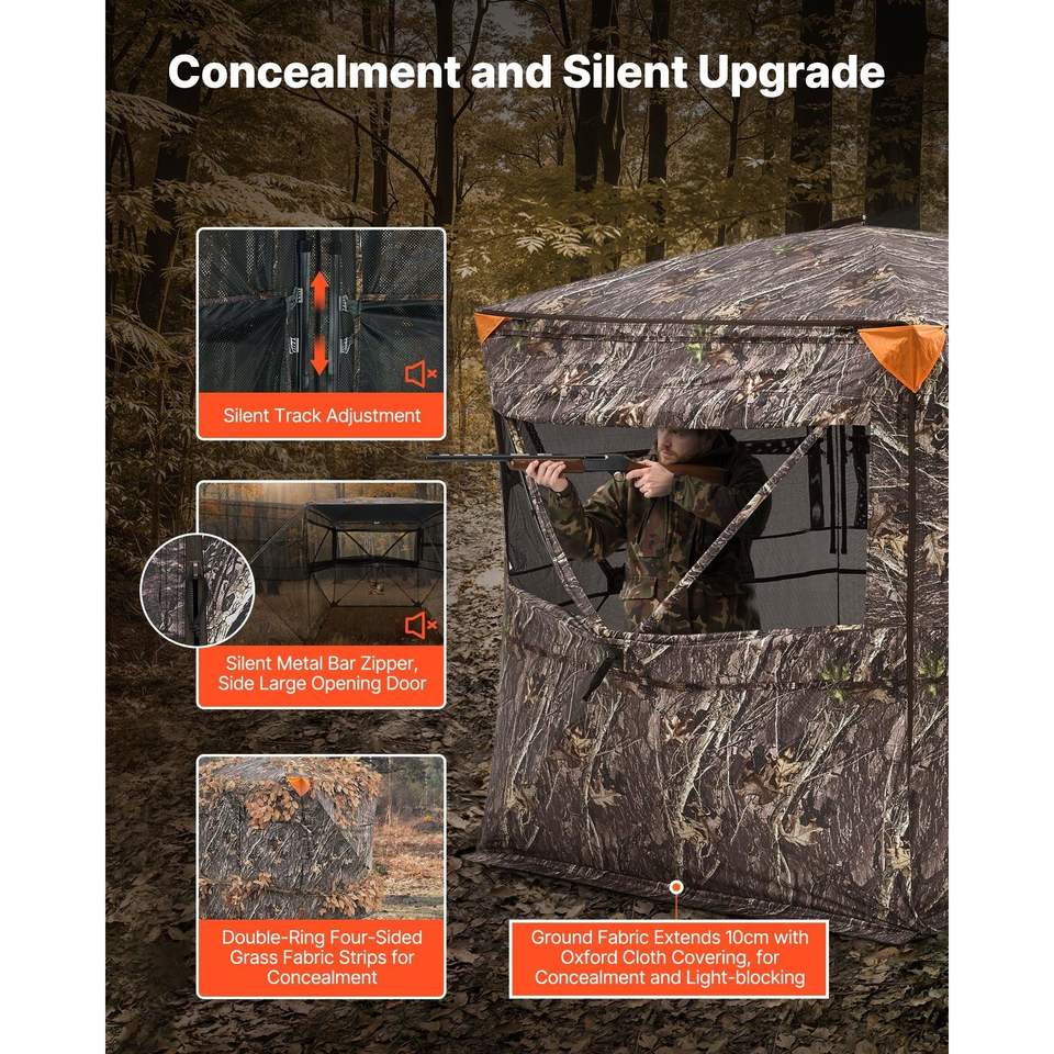 Tenda Mimetica Portatile Resistente per 4-5 Persone, con Visibilità a 360 Gradi, per Caccia, con Borsa per il Trasporto Nascosta