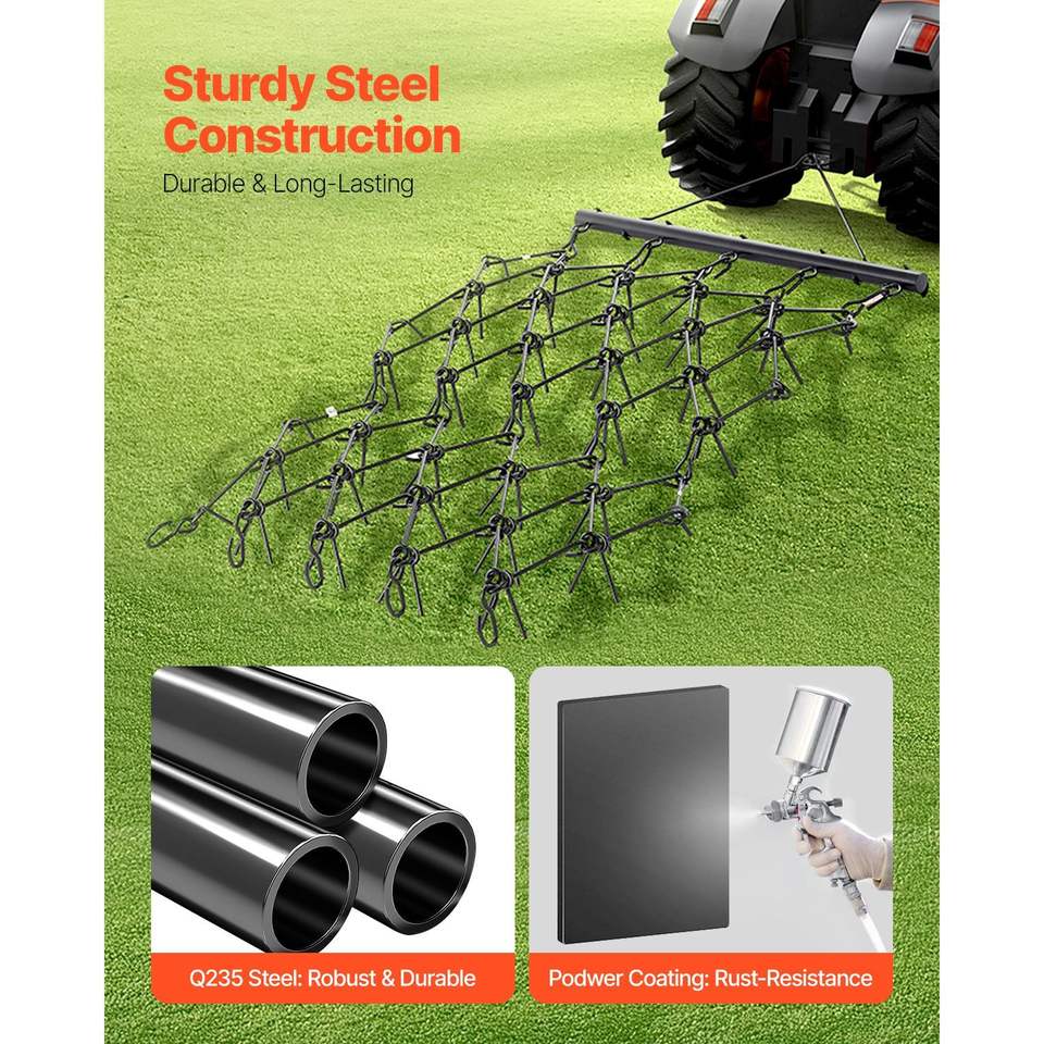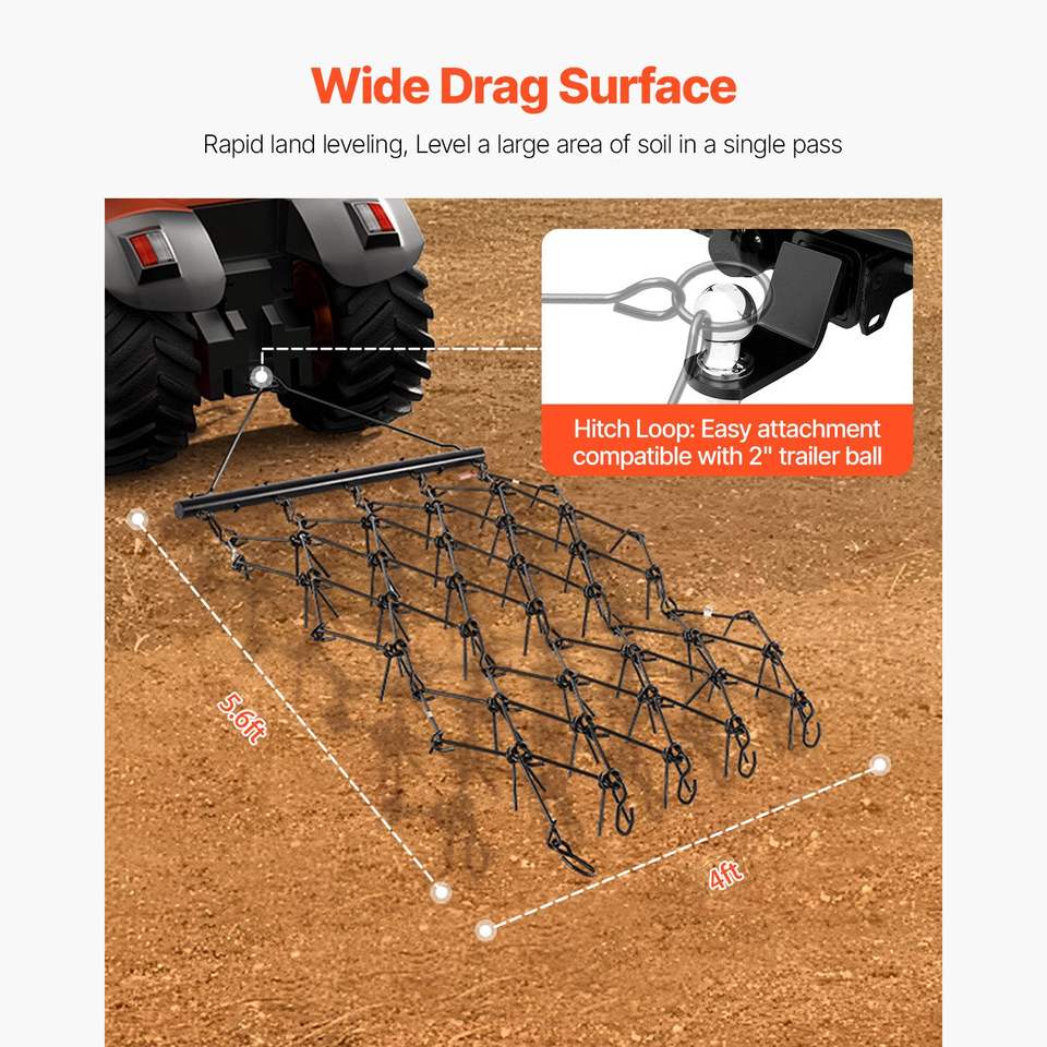 Erpice a Denti Affilati Durevole 4 ft X 5.6 ft, 80 Denti, Accessorio per ATV/UTV/Trattore, per Preparazione del Terreno e Altri Macchinari Agricoli