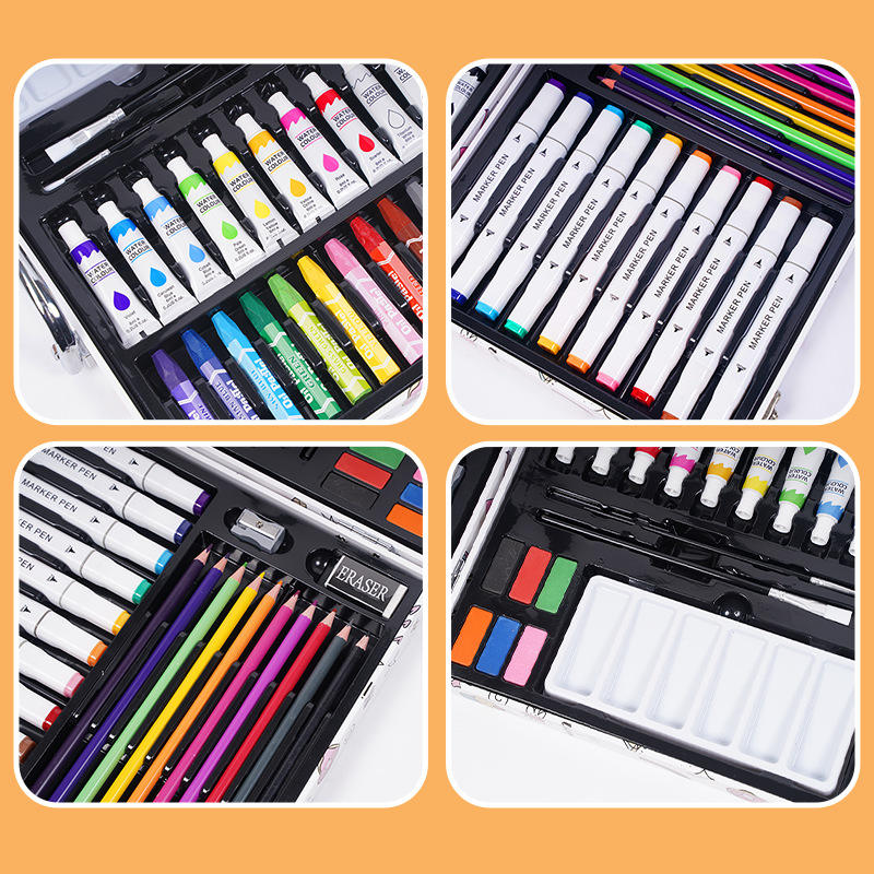 Set Artistico per Bambini da 53 Pezzi, Resistente, con Pennarelli ad Acqua, Matite Colorate, Pastelli a Olio, Scatola con Stampa Cartoon, Regalo per Disegno