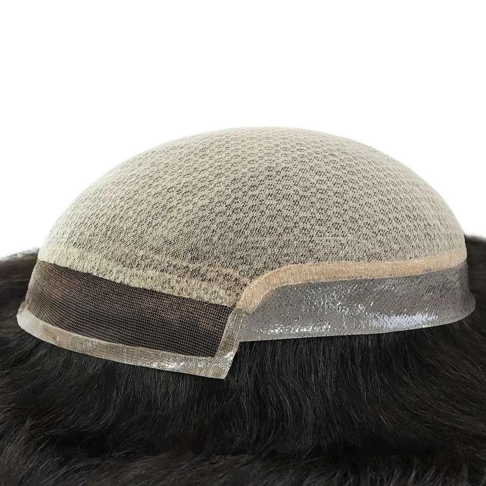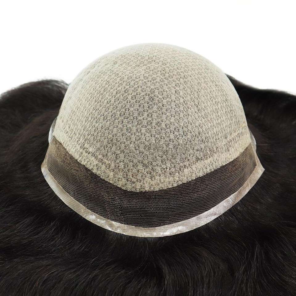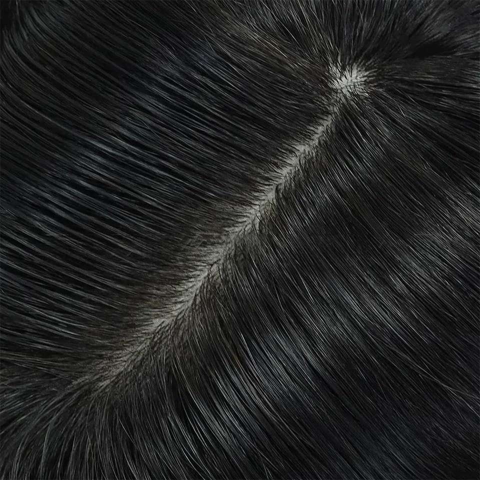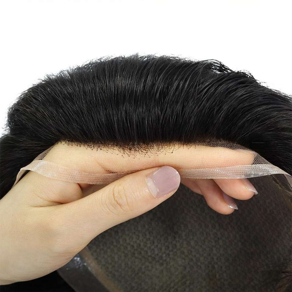 Sistema di Sostituzione Capelli Durevole da 6 Pollici con Base in Seta e Pizzo Frontale, Toupet in Capelli Indiani, Protesi Capillare Professionale per Uomini