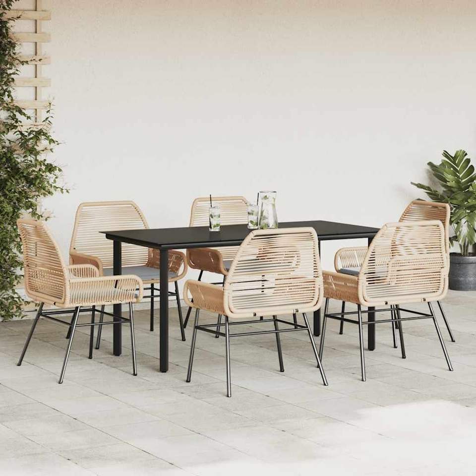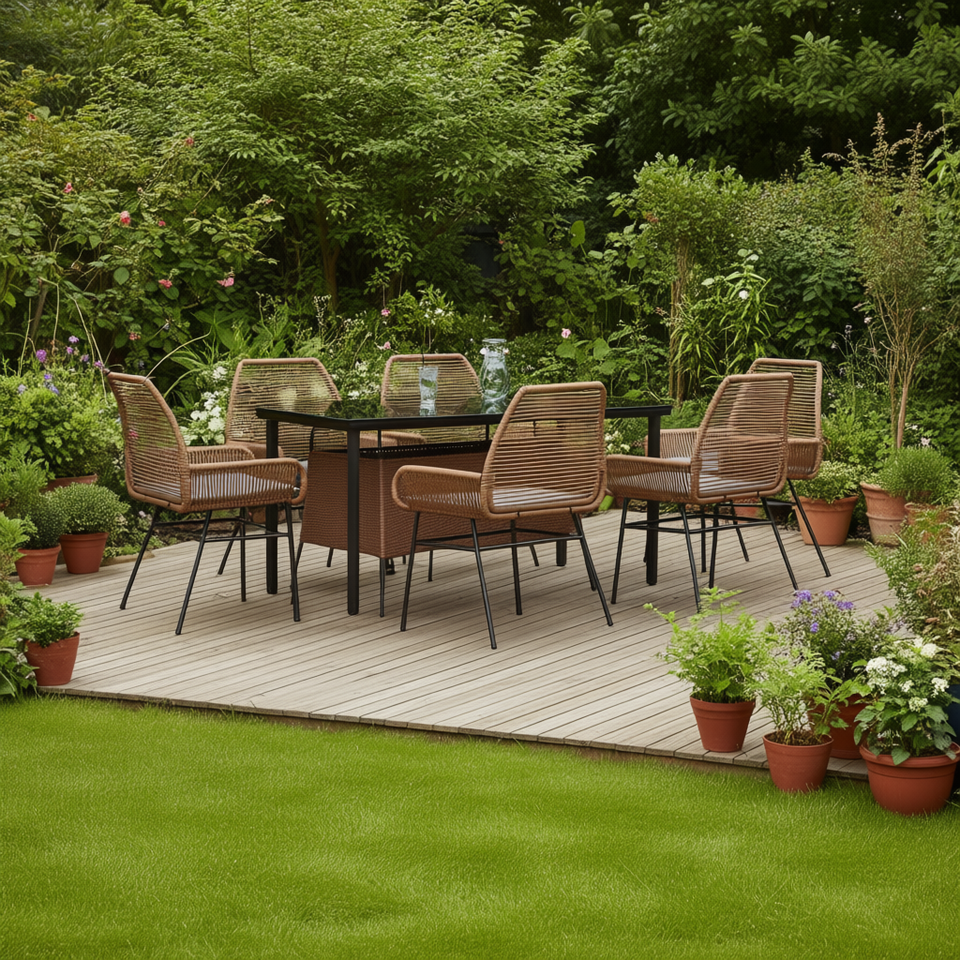 Set da pranzo da giardino a 6 posti in rattan PE marrone con struttura in acciaio, mobili da esterno dal design contemporaneo per uso in giardino