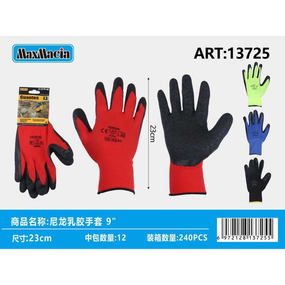 Guanti in lattice di Nylon 9 pollici resistenti per lavoro e uso industriale di protezione della mano