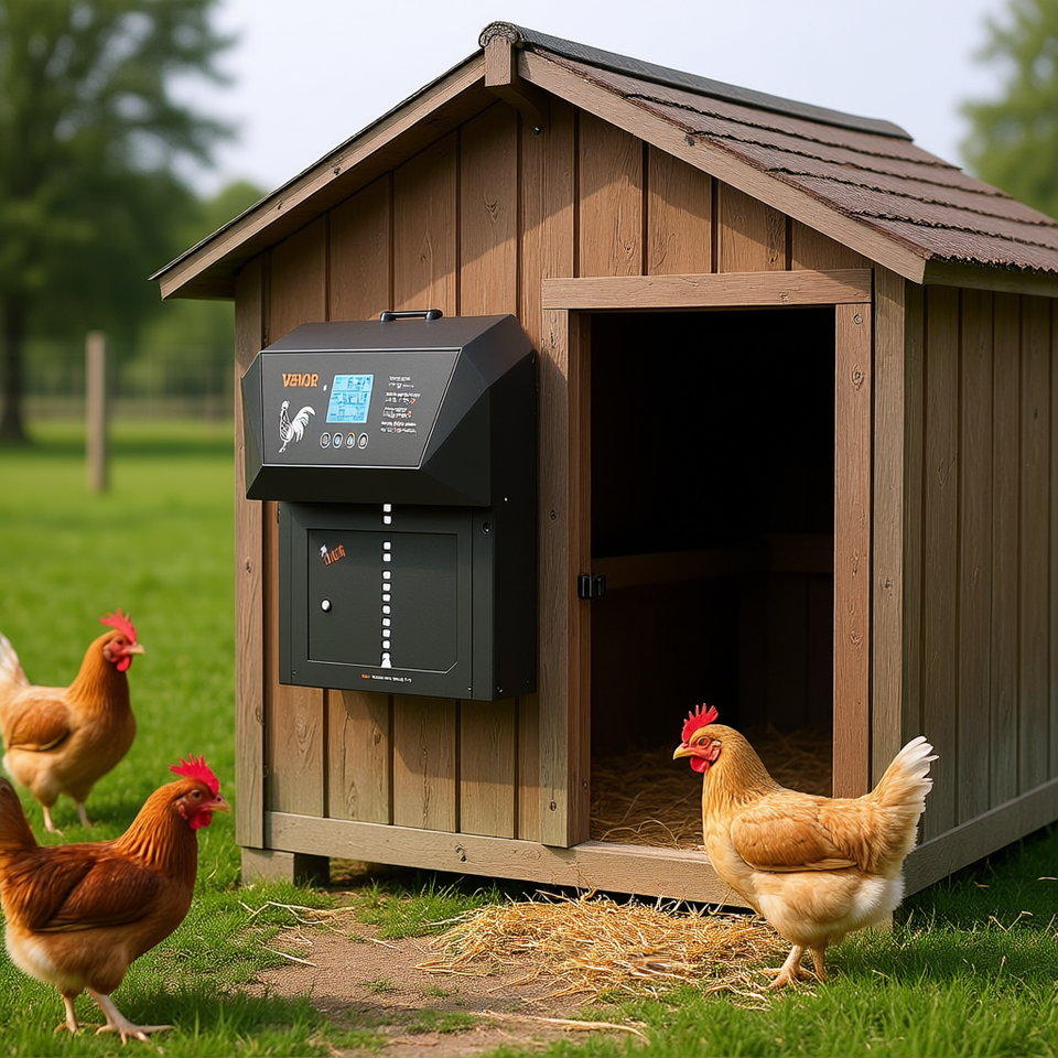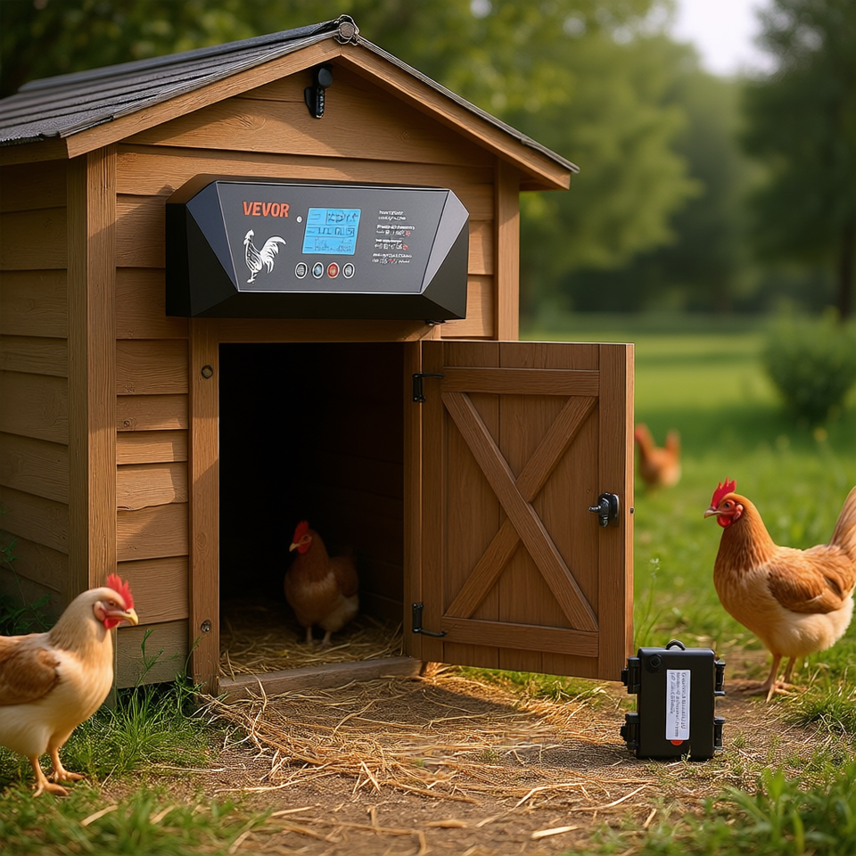 Porta Automatica per Pollaio in Lega di Alluminio, Alimentata a Batteria 12V DC, Display LCD, Sensore di Luce, Timer con Impostazione Manuale