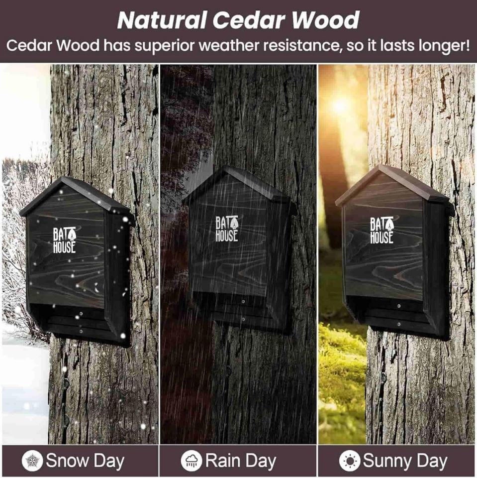 Casetta per Pipistrelli in Legno di Cedro Durevole, Elegante, a 2 Camere, Impermeabile, Nera, Facile da Installare, per Esterni, con Forma Triangolare Accattivante
