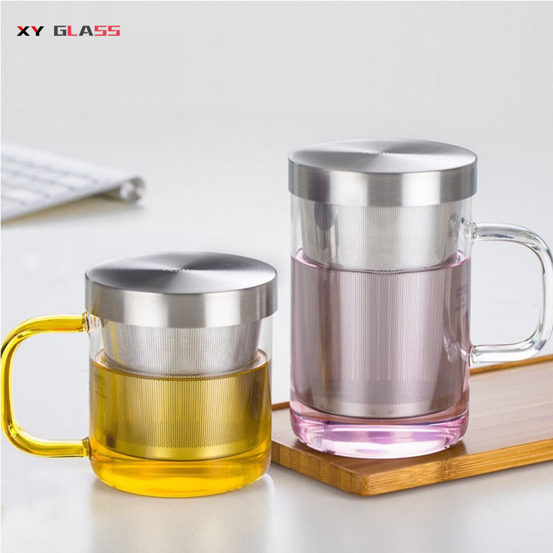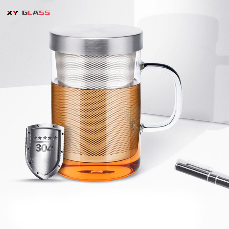 Durevole progettato arrivo borosilicato forno cassetta di sicurezza di vetro colino da tè infusore tazza