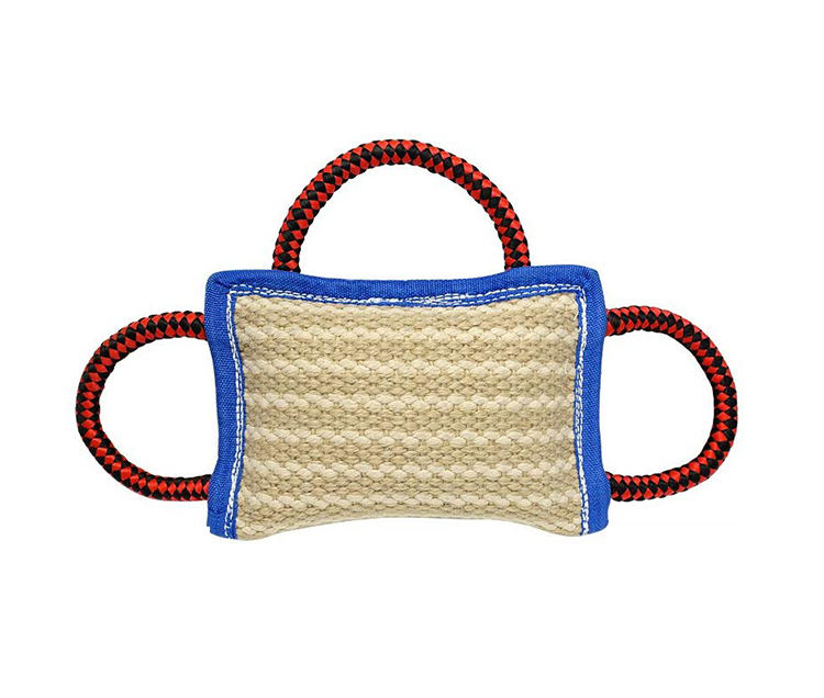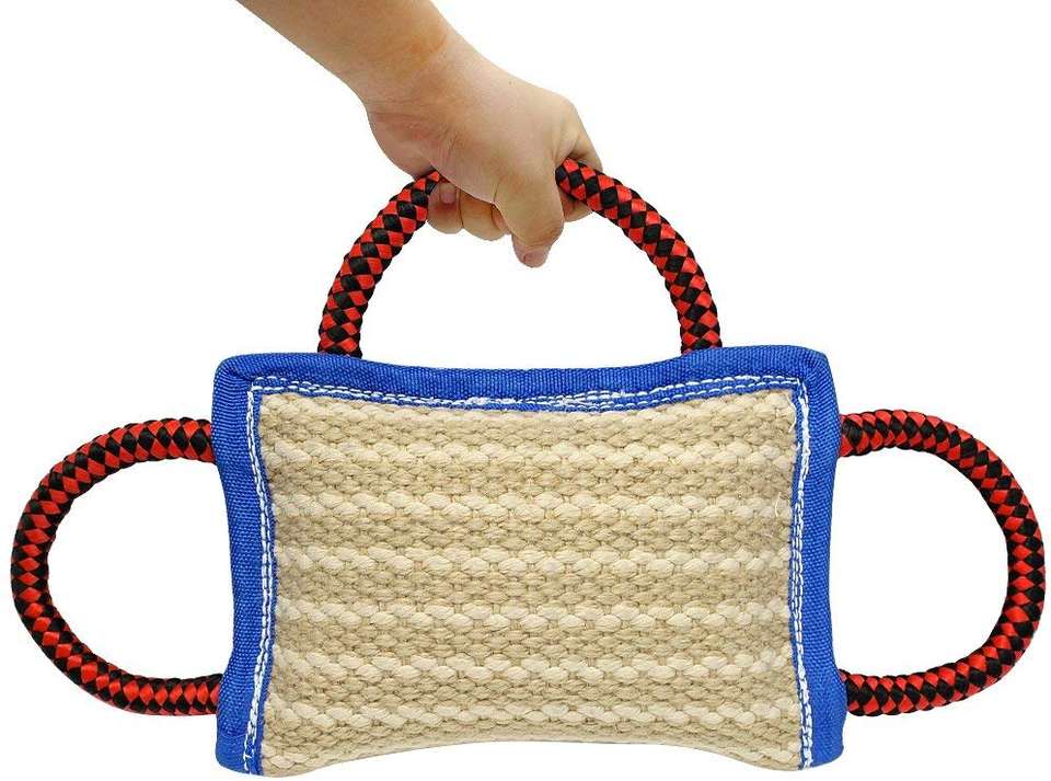Durevole di Addestramento Del Cane Rimorchiatore Giocattolo, 3 maniglie di Iuta Morso Cuscino 9.5 "6.5" di Lino Rimorchiatore Giocattolo per i Giovani Cani