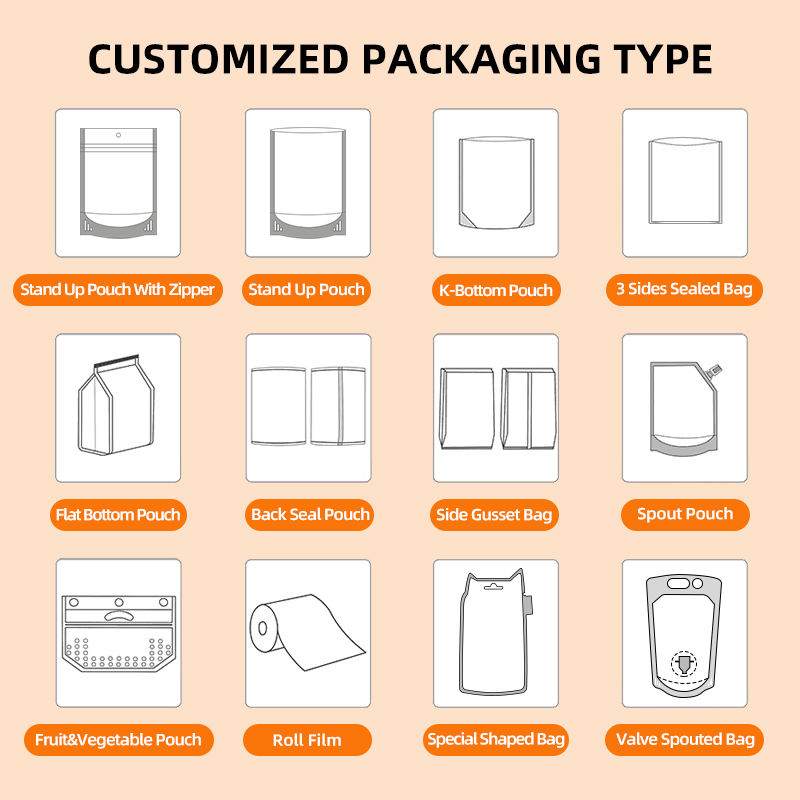 Material combination:PET/LLDPE,PET /ALU /LLDPE,MOPP/PET/LLDPE,MOPP/VMPET/LLDPE,PET/VMPET...