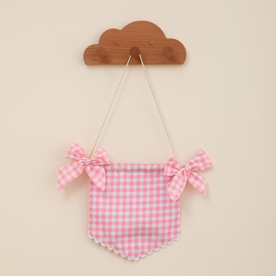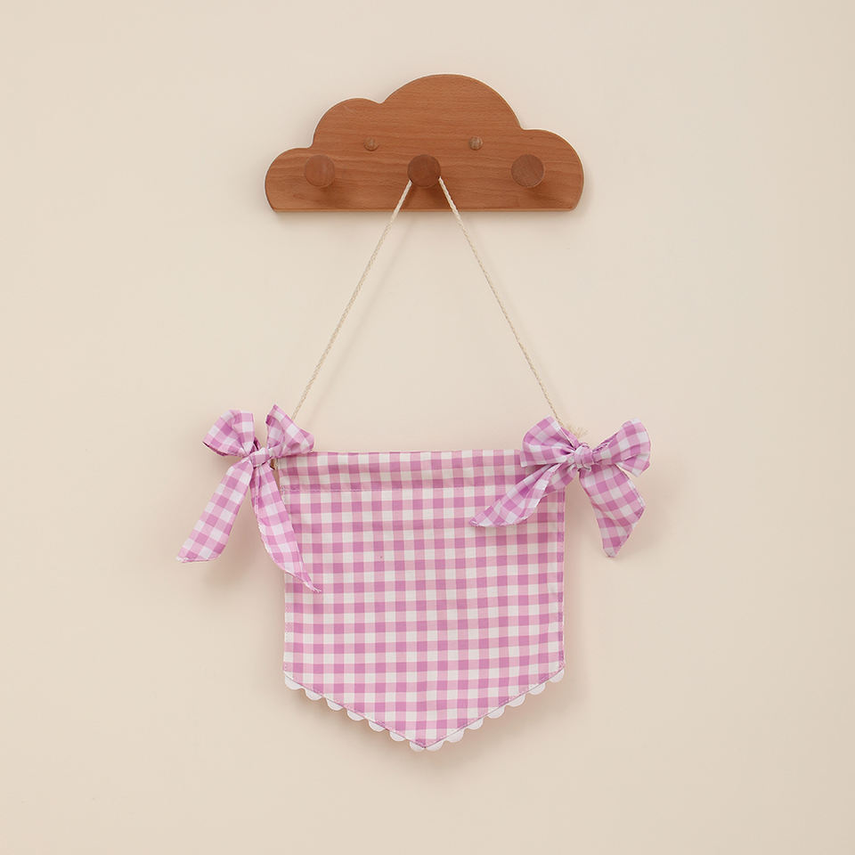 Bandierina di benvenuto per neonati in cotone gingham resistente con dettagli a fiocco, decorazione unisex per baby shower