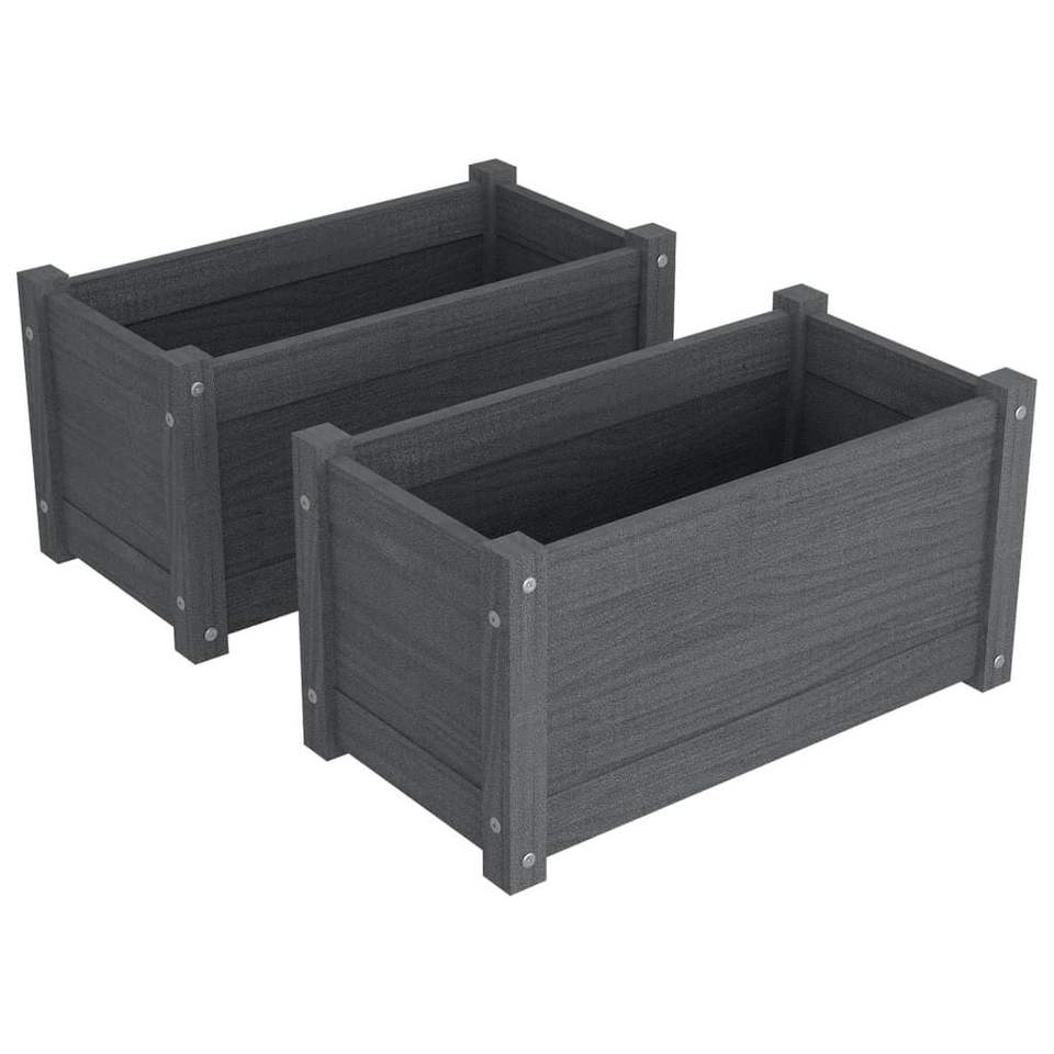 Set di 2 Fioriere da Giardino in Legno di Pino Grigio Resistente per Vasi e Fioriere