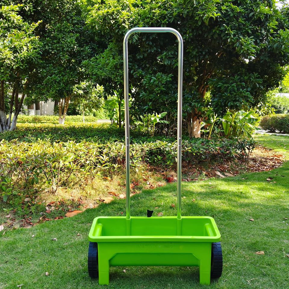 Durevole spargitore di semi spinti a mano 12L spalmatore di erba da prato con ruote per lavori di semina all'aperto
