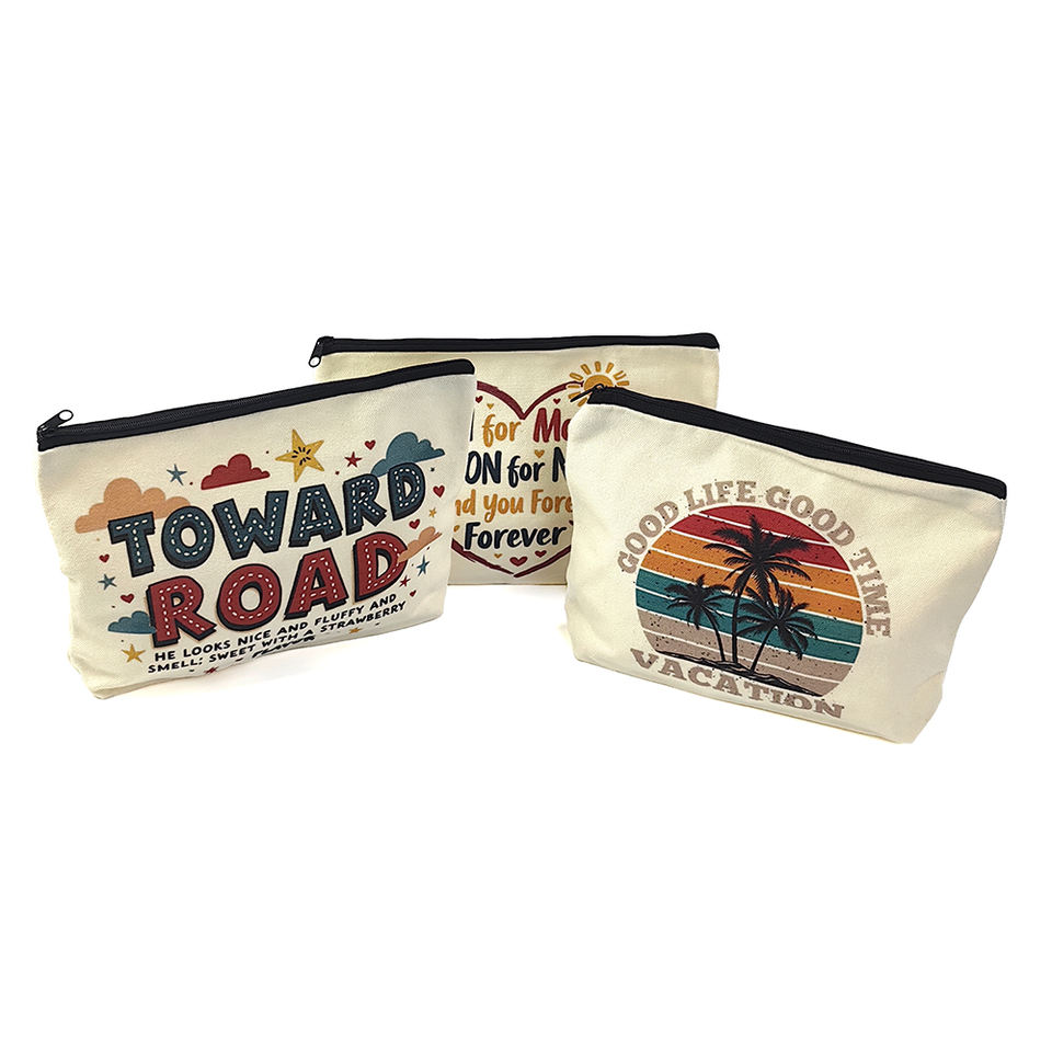 Durable Lightweight Cotton Canvas Cosmetic Bags Romantic Heart Design Makeup Bag for Daily Travel Storage