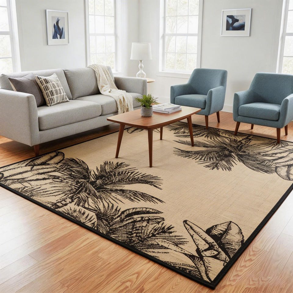 Tappeto Moderno Floreale Manemi a Pelo Corto in Polipropilene, Rettangolare, Resistente alle Macchie, per Interni ed Esterni, Patio, Balcone, Soggiorno