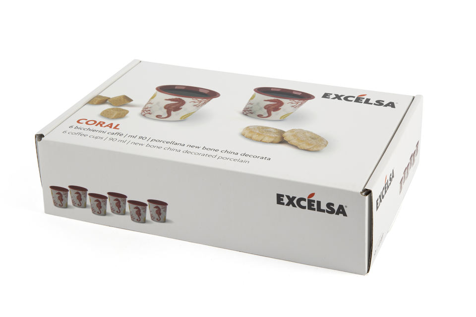 Set di 6 tazzine da caffè espresso in New Bone China resistente, 9 cl (3 fl oz), colore Coral di Excelsa, design Mediterraneo e Barriera Corallina