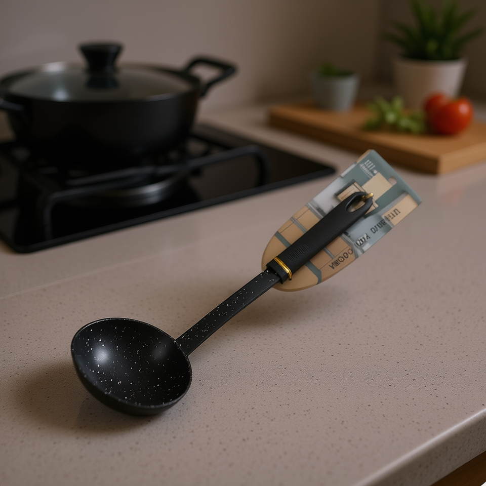 Mestolo in Plastica Resistente con Finitura Maculata - 29,5 x 9,5 Cm - Utensile da Cucina Lavabile in Lavastoviglie per Cucinare e Servire di Zaa