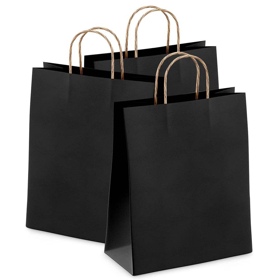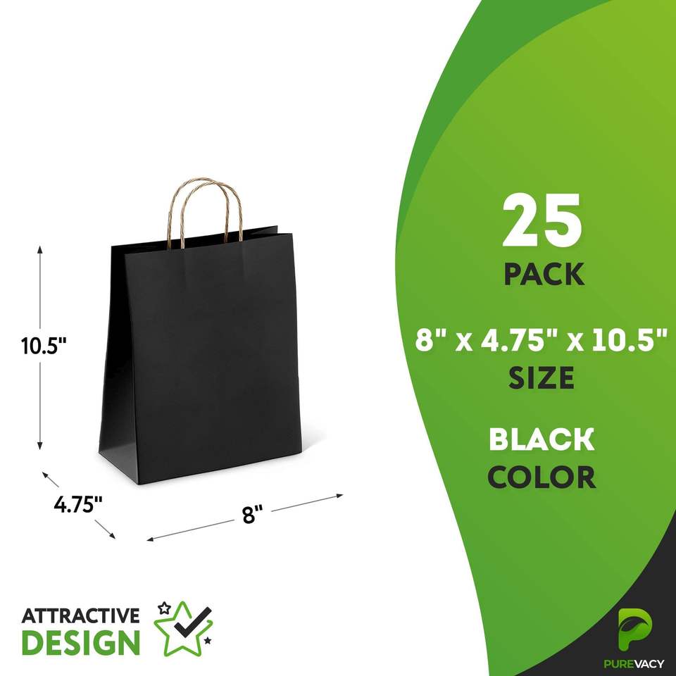 Riutilizzabili 8X4.75X10.5 sacchetti regalo in carta Kraft nera con manici eleganti borse della spesa per feste leggere