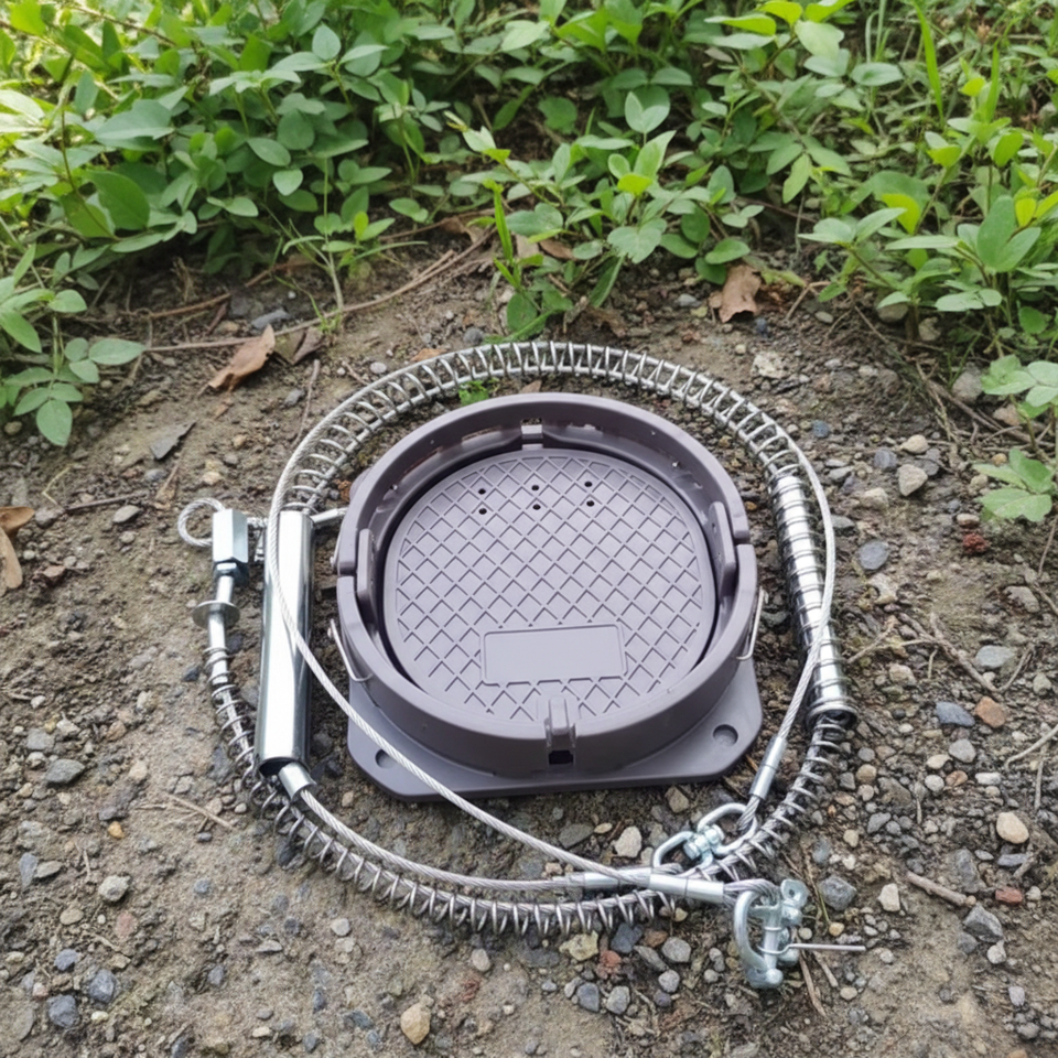 Trappola a molla in acciaio resistente per cinghiali, volpi e conigli, cavo in acciaio inossidabile da 4 mm di diametro, dadi di ricambio solidi, richiamo per caccia in fattoria