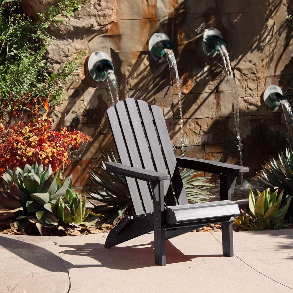 Sedia Adirondack pieghevole resistente alle intemperie 300 lb capacità nera sedia da giardino senza spilli necessari