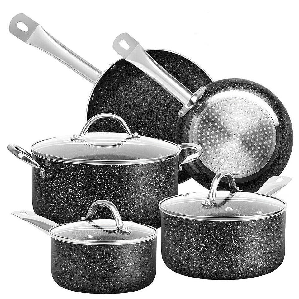 Durevole e facile da pulire pietra di rivestimento con maniglia in acciaio inox set di pentole