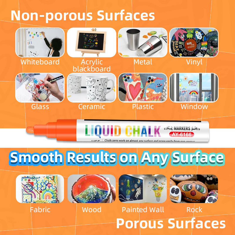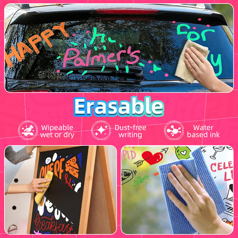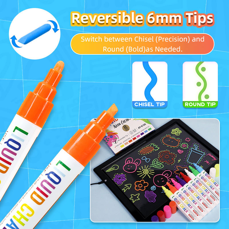 Pennarelli a Gesso Cancellabili Senza Polvere, Inchiostro a Base d'Acqua, Marcatori Fluorescenti Colorati per Lavagna Luminosa, Gesso Liquido per Lavagna