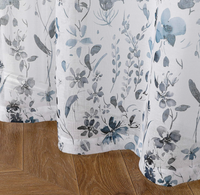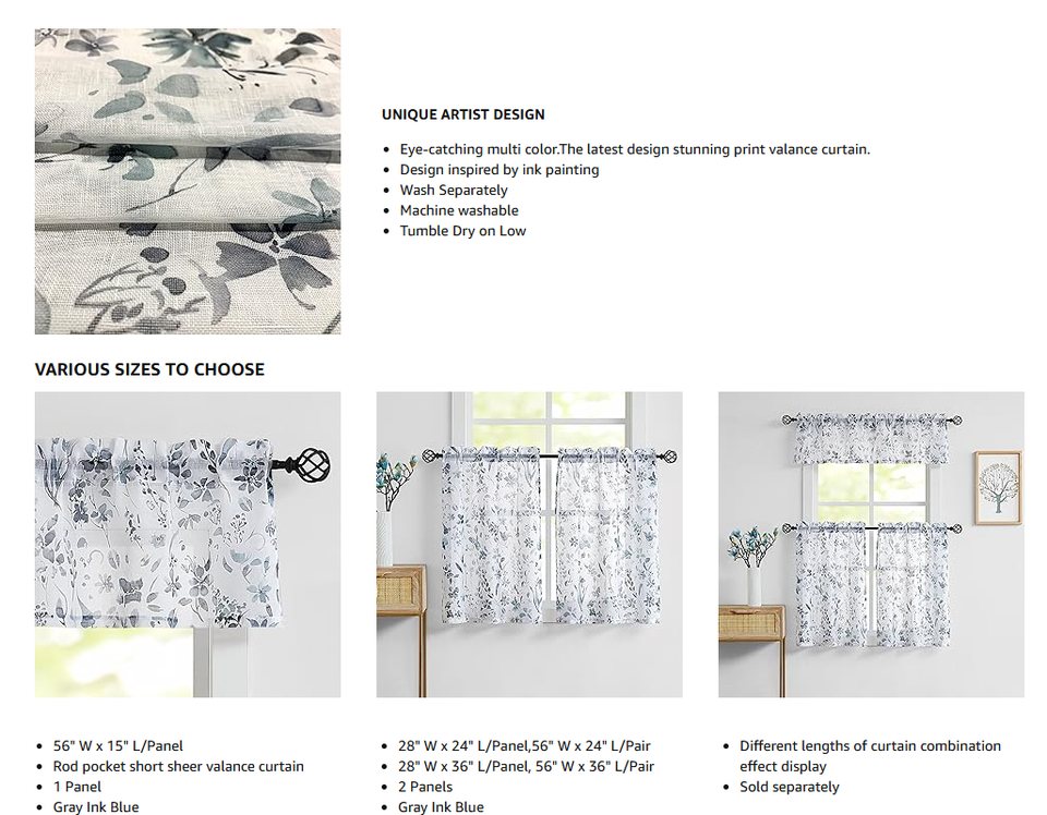 Tende da cucina blu grigio polveroso con fiori lunghi 45 pollici piccole tende rustiche per finestre in lino di fattoria