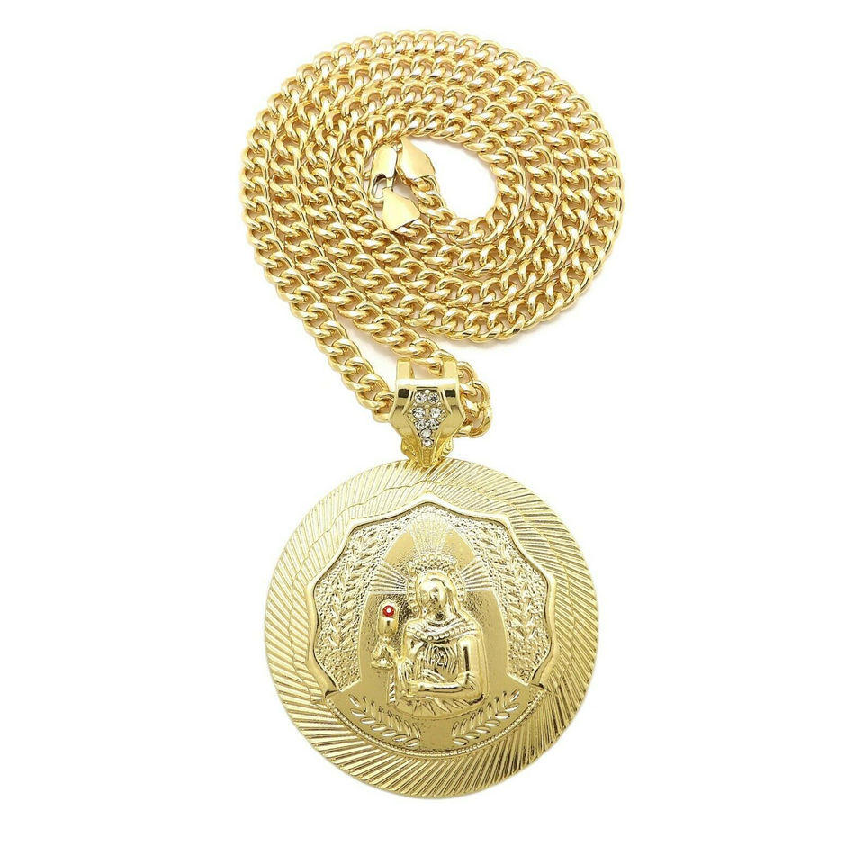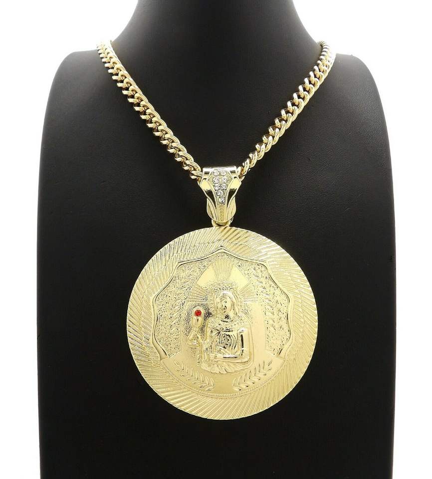 Collana con Ciondolo Hip Hop Iced Santa Barbara di Duyizhao, Placcata in Oro 14k, Ciondoli Rotondi Personalizzati, Gioielli all'Ingrosso