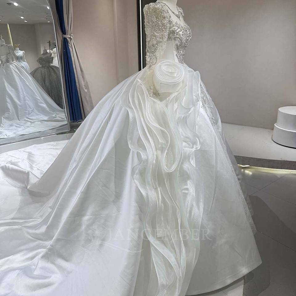Dw0180 Luxury Brautkleider Long Sleeve Beaded Sequined Ball Gown Wedding Dress Customized Ceremony Jancember