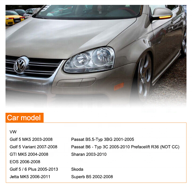 Nome del prodotto:Luce dinamica a LED per specchietto con indicatore di direzione per VW Golf5