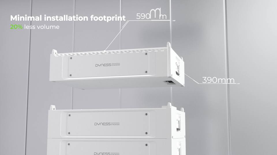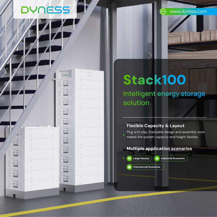 Batteria Domestica Dyness Stack100 50kWh LiFePO4, Impilabile Senza Limiti, Soppressione Incendi ad Aerosol, 8000 Cicli, Garanzia 10 Anni