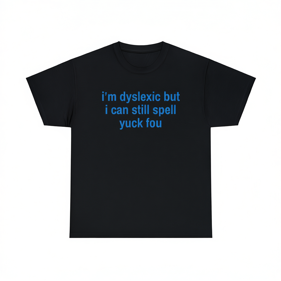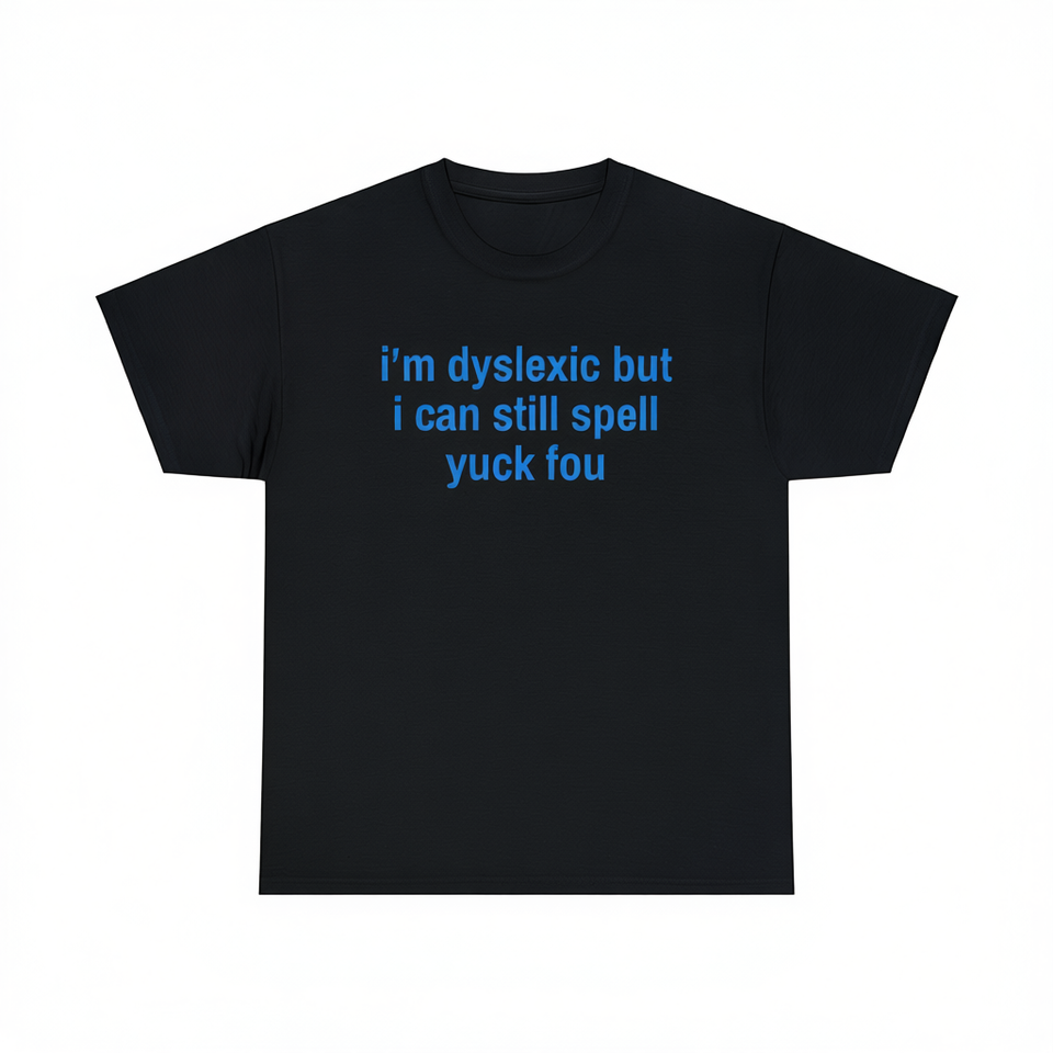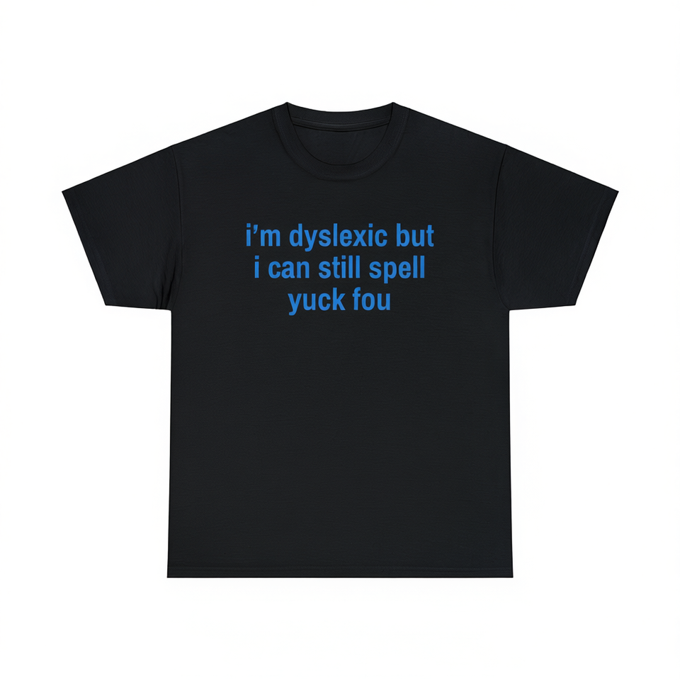 T-shirt Dyslexic But I Can Still Spell Yuck Fou, girocollo unisex, manica corta, design promozionale per adulti