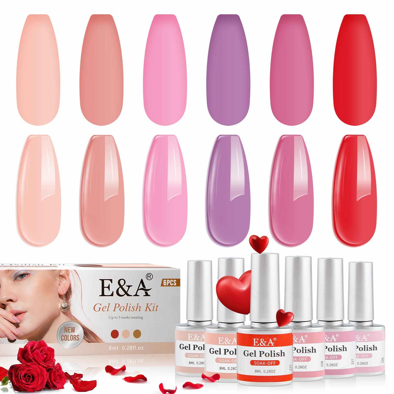 E&A Hybrid Gel Nail Polish Kit, Manicure Make up UV Glitter Varnishes, Long Lasting Pure Color Gel Nail