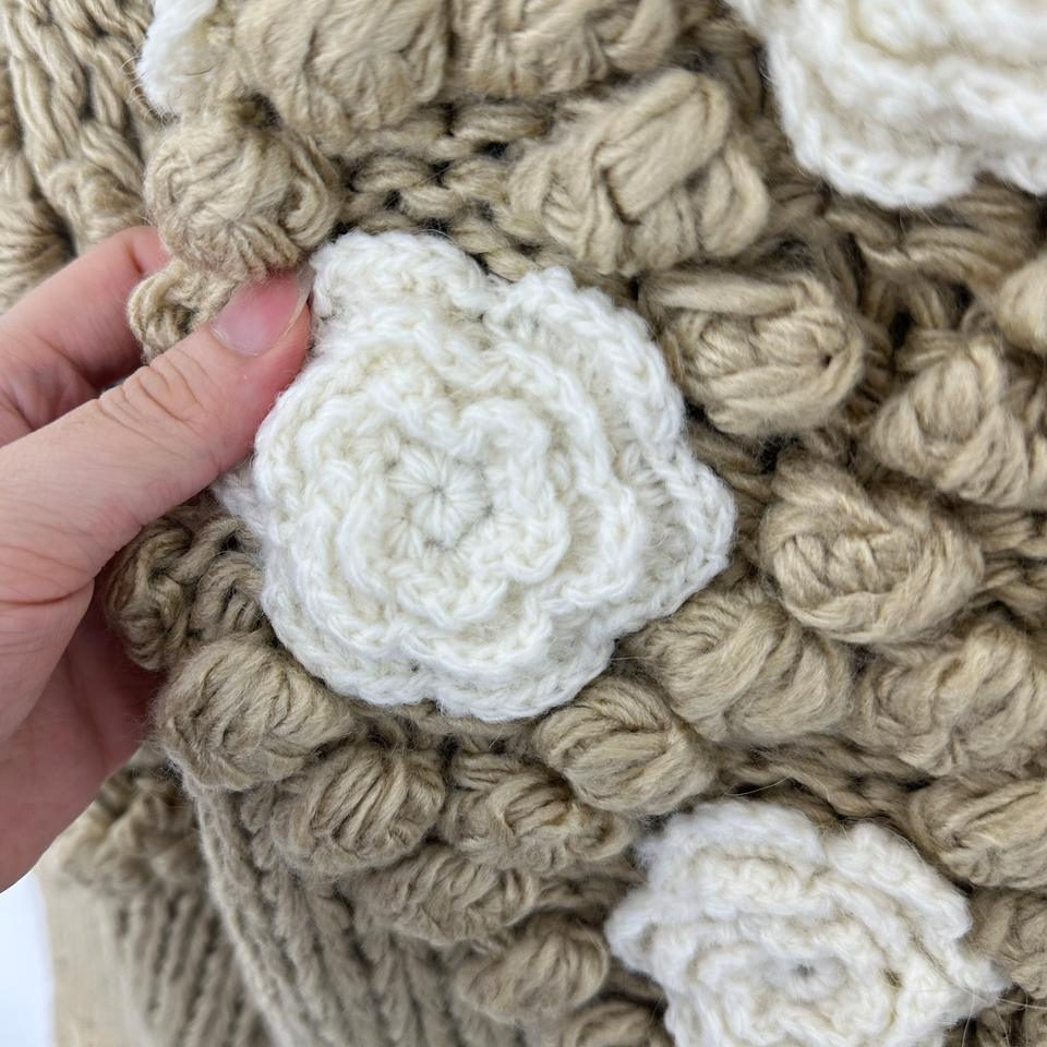 E&L Handmade Acrylic Breathable Winter Women's Casual 3D Ball Flowers Crew Neck Single Button Hand Knit Sweater Cardigan