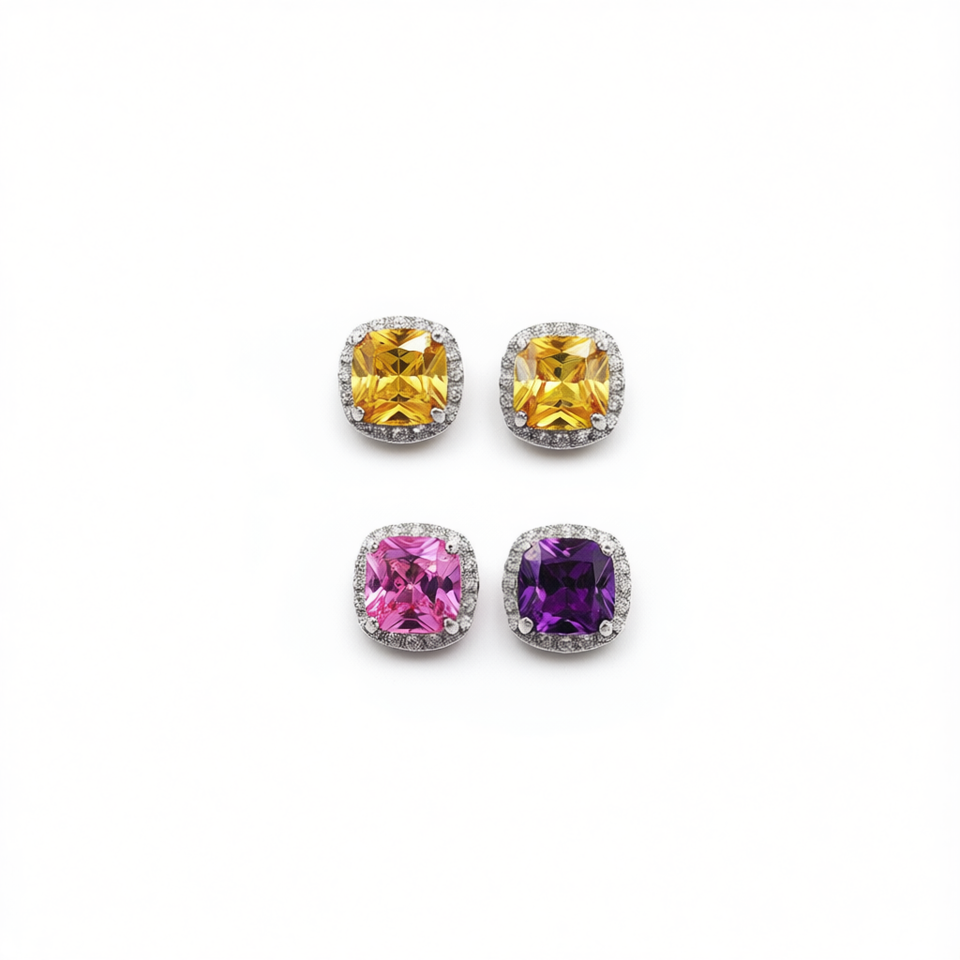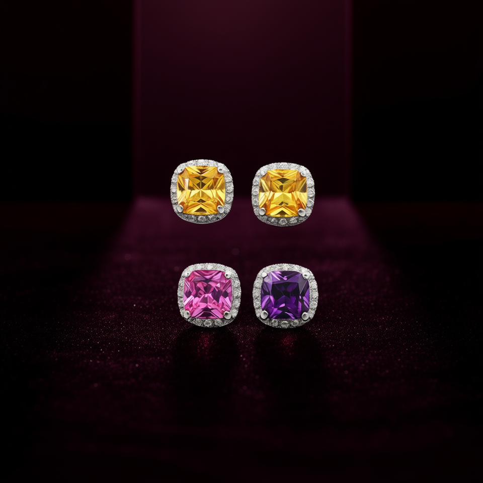 E1049 Orecchini a lobo con cristalli rosa, montatura geometrica, gioielli di lusso da donna
