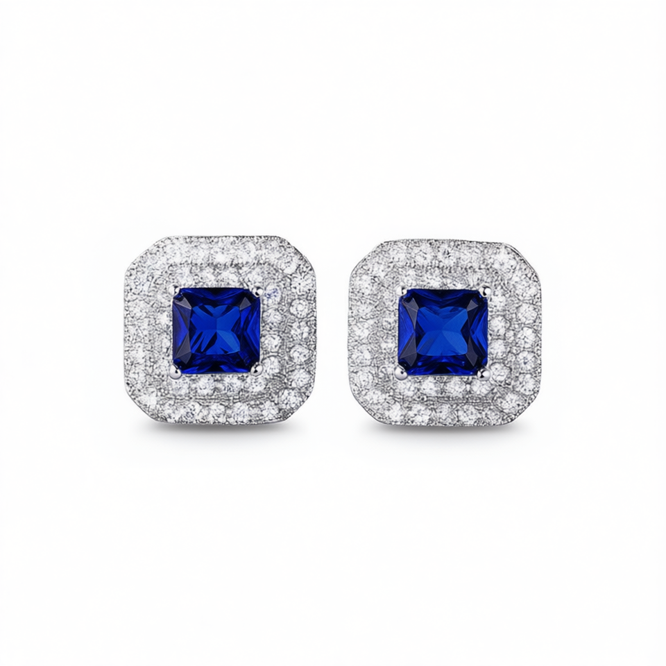 E1053 Women's Sapphire Stud Earrings Princess Cut Claw Setting Geometric Classic Fine Jewelry