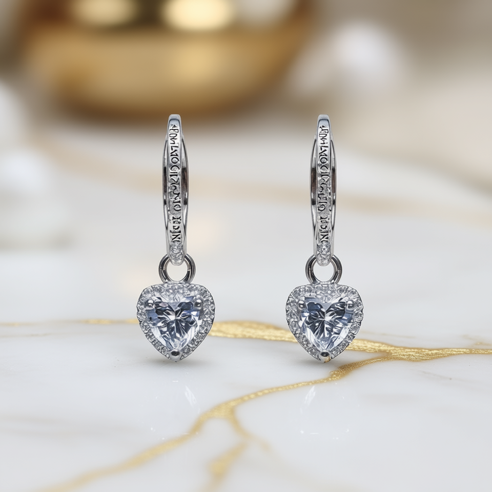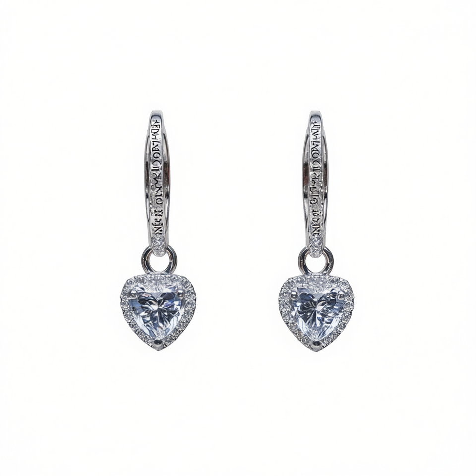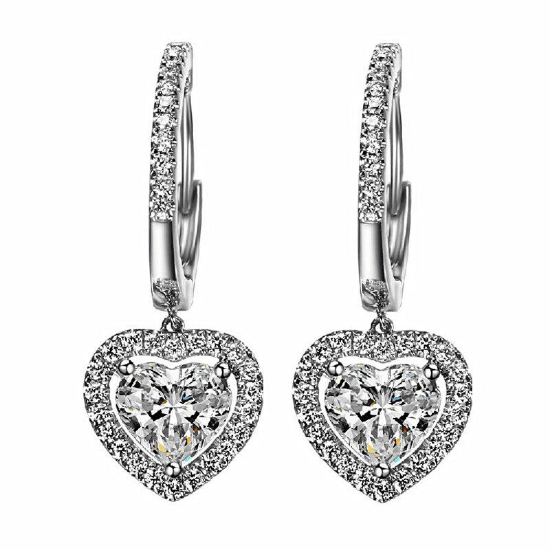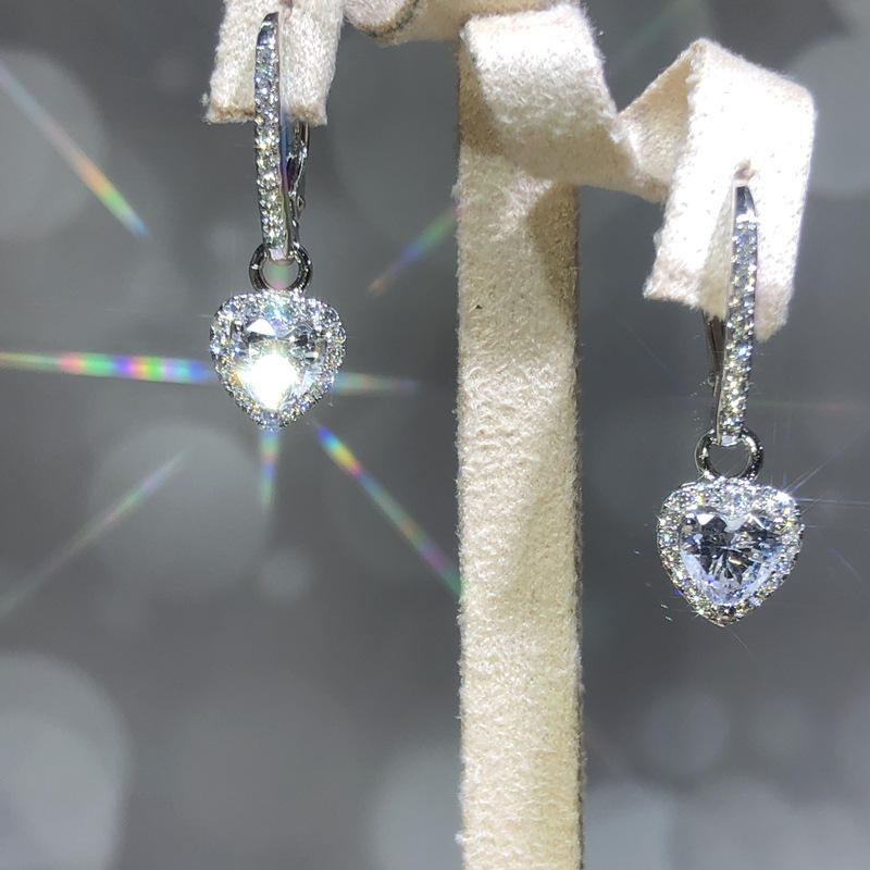 E1066 White Gold Heart Drop Earrings Crystal Rhinestone Bezel Setting Romantic Wedding Women's Jewelry